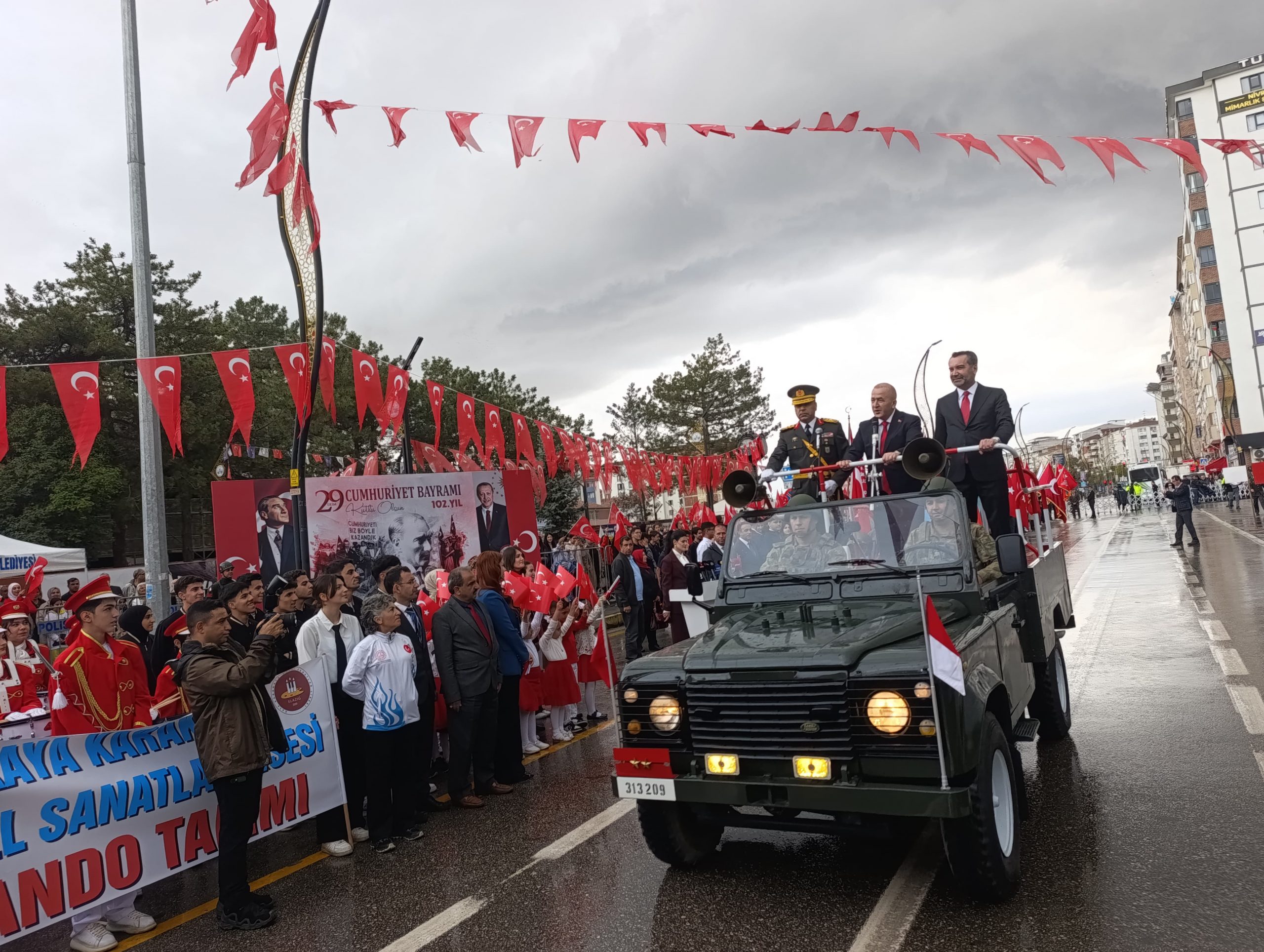 Sabahın erken saatlerinden itibaren meydanları dolduran Elazığlılar, Cumhuriyet’in 102. yılını büyük bir heyecanla karşıladı. Yağmura rağmen alanları dolduran vatandaşlar, ellerinde Türk bayraklarıyla “Yaşasın Cumhuriyet” sloganları attı. Öğrencilerin, gazilerin ve halk oyunları ekiplerinin renk kattığı kutlamalarda, duygu dolu anlar yaşandı.
