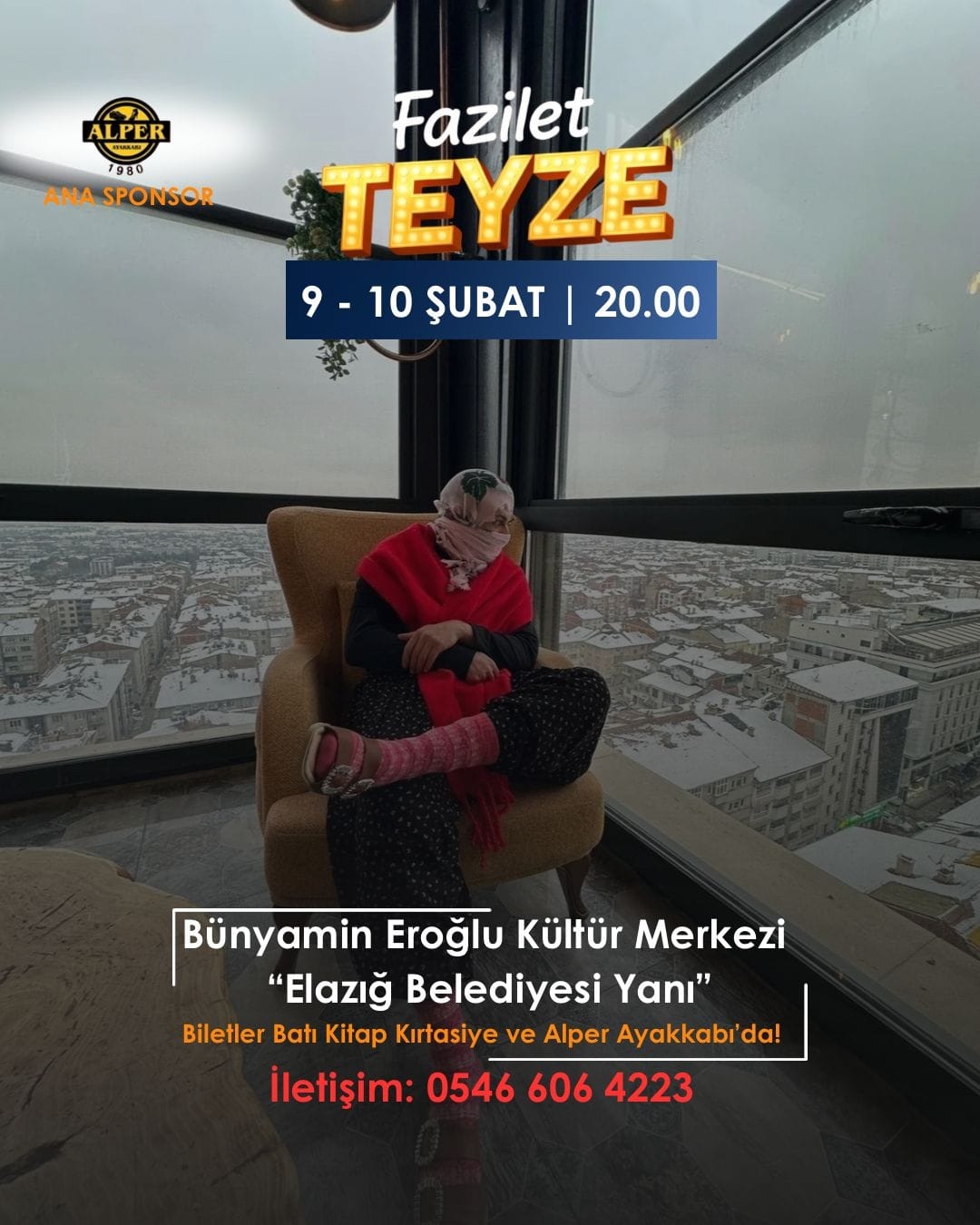 Stand-up ve tiyatroyu bir araya getiren “Fazilet Teyze” adlı oyun, Elazığlı sanatseverlerle buluşmaya hazırlanıyor. Mizah dolu anlatımı ve sahnedeki enerjik performanslarıyla dikkat çeken oyun, 9-10 Şubat tarihlerinde saat 20.00’de sahnelenecek.